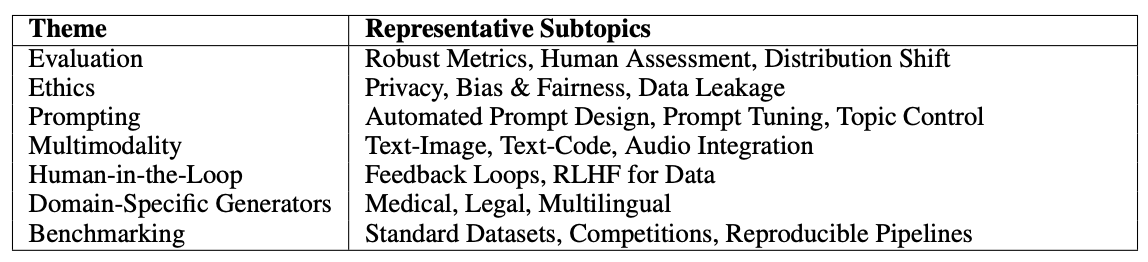 - techniques: prompt-based generation, retrieval-augmented generation, self-instruct methods, reinforement learning with feedback과 같은 접근법 정리